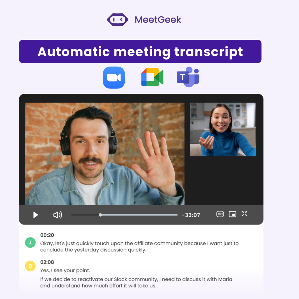 Yes — MeetGeek has a free plan that includes limited transcription hours per month. It’s enough for light users to test the tool before upgrading.